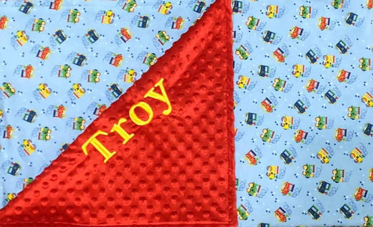 Belle's Blankets are personalized, custom minky blankets. The blankets below are just a few of the ones that have been designed. The sizes range from infant all the way to Adult. Since these are custom you will need to provide the theme, color, and name you would like on the blanket. After we have those items we will then provide you with the options available! See prices at the bottom of this page.
